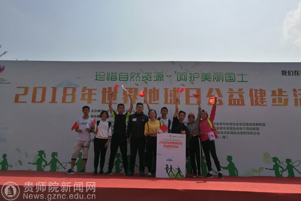 本网讯 4月22日上午,由贵州省青年体育协会主办的2018年世界地球日公益健步活动在观山湖公园民族广场准时开跑。体育学院休闲体育和体育教育专业学生及教师代表贵州师范学院分会参加了本次活动。