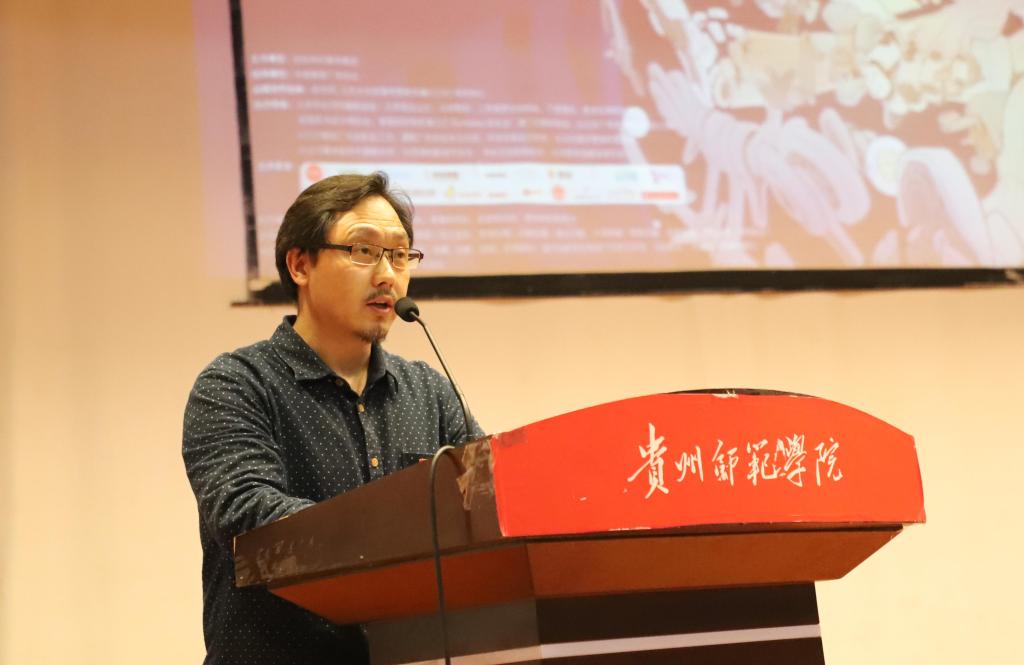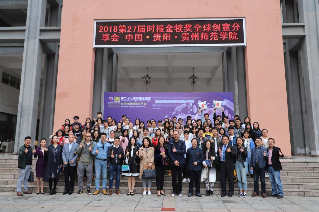 本网讯 4月24日下午,由旺旺中时媒体集团、中国商务广告协会、贵州师范学院设计学院共同举办的第27届金犊奖中国·贵州站校园创意分享会在贵州师范学院逸夫楼演播厅举行。贵州师范学院纪委书记王之瑞、贵州师范学院副校长郭文、旺旺中时文化传媒副总监方博文、贵州师范学院设计学院基层党委书记侯晓薇、贵州师范学院设计学院副院长(主持工作)聂森、中共吉林市台湾办公室主任王继、中共吉林市台湾办公室副主任赵冬、中共吉林市委员台湾工作办公室宣传交流处处长马朋飞、旺旺中时文化传媒(北京)有限公司副总监方伟光(中国台湾)、北京广告公司创意顾问薛振添(中国台湾)、伊林娱乐项目事业部副总杨宗霖(中国台湾)、时报金犊奖大陆召集人周智、统帅集团总监江海波、贵州商学院文化与艺术传媒学院院长严帆、贵州商学院文化与艺术传媒学院副院长张思思、贵州财经大学文传学院传媒与广告发展中心主任罗健等来自贵州高校的嘉宾与贵州师范学院设计学院全体师生、贵州师范学院艺术学院部分师生、贵州商学院部分师生共400余人参与了此次分享会。