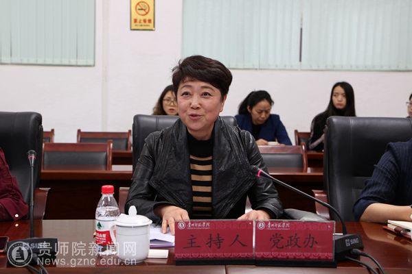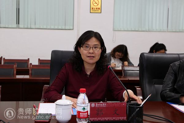 会上,首先观看贵州师范学院宣传片,郭文介绍了我校的历史沿革及办学规模、内部机构、学科专业、人才培养、发展模式等方面的基本情况。并详细诠释了学校在合格评估工作中评估指标涵盖的制度建设、办学定位、师资队伍、人才培养方案、课程建设等,以及涉及的试卷、论文、听课、访谈、实践教学等方面的工作经验、做法及体会。她说,我们学校通过评与建,一是在全面开展和加强本科教学建设、教学改革和教学管理工作,人才培养质量、科学研究水平、社会服务能力、文化传承创新等方面得到全面提高;二是在办学指导思想、目标定位、人才培养、教学基本建设和教育教学改革诸方面均取得可喜的成绩,呈现出良好的发展态势;三是坚持教学工作的中心地位,注重凝练专业特色,重视教学质量保障体系建设,本科教学工作取得明显成效。最后,郭文代表学校表示将对评估工作给予多方位全力支持,并预祝理工学院合格评估顺利通过,取得更好成绩。