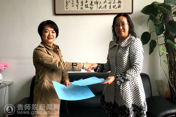 本网讯 为实现教育资源的共享,加强校地合作,5月3日,教育科学学院院长刘红、办公室主任游超颖、学前教育卓越班导师申苒一行前往贵阳市乌当区图书馆,就“绘本阅读·放飞童梦”公益绘本表演项目与乌当区图书馆签订合作协议。乌当区图书馆代理馆长薛玉、活动负责人段妮参加此次协议的签订。