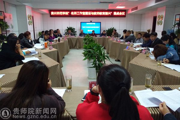 本网讯 5月10日下午,“贵州师范学院名师工作室建设与教师教育振兴”会议在信息楼1210室教师聚智园召开。全校校级名师工作室主持人及助理、学校教务处、质评办、学工部负责人、各学院(部)分管教师教育的负责人、师范专业学科课程与教学论教师代表共计40余人参加会议,校长郁钟铭、副校长郭文出席会议。会议由教师工作处处长谢笠主持。
