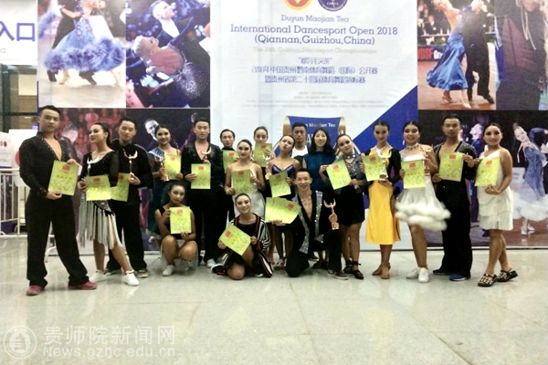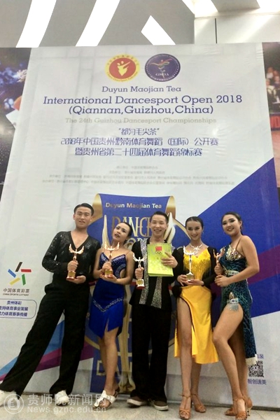 由中国体育舞蹈联合会和国家体育总局确认批准,贵州省体育局和黔南州人民政府主办的大赛于5月12日拉开帷幕,此次大赛有来自国外以及省内外的几千名选手汇聚黔南,我校体育舞蹈队在校领导以及体育学院领导的关心与支持下,由董涛老师指导并带领出征此次大赛,并获得了傲人的佳绩。
