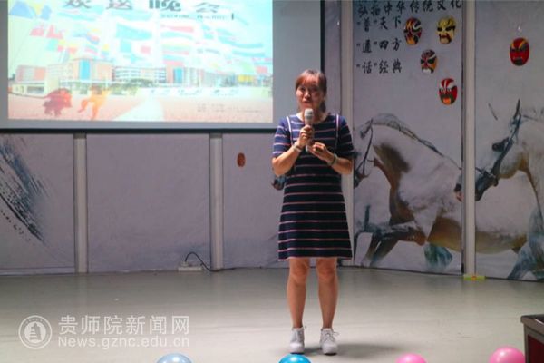 时光匆匆,感谢相逢。晚会伊始,陈亦桥为晚会开幕致词,她说,文学院2018届留学生欢送会,也是文学院第一届留学生欢送会。她对留学生来到学校的学习结果予以肯定,认为他们在一年的学习生活中学到了知识,交到了朋友,感受了文化,对他们送上祝福,希望他们前程似锦,她表示贵州师范学院永远是大家温暖的家。接着瓦韵青也发表了老师讲话,她对留学生说:“自从你们进入贵州师范学院以来,这一路上我看着你们的成长,看着你们从什么都不会到顺利结业,我为你们感到高兴”。瓦韵青用她在课堂上说的话来祝福留学生,希望他们以后的生活幸福甜蜜。
