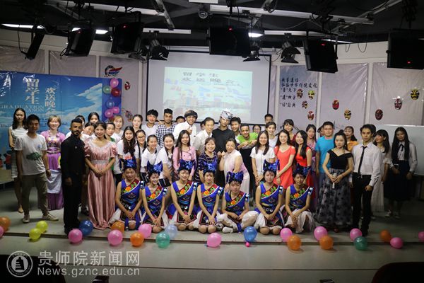 晚会中关于留学生点滴的视频,将晚会推向高潮,视频记录了留学生学习生活的点滴,也表达了对老师同学的感谢与不舍。本场晚会,不仅展示了我院留学生以及汉语国际教育专业学生的青春活力与魅力,而且也展示了我院独有的创意与热情。对于留学生来说,这是一场难舍的晚会,是一场难以忘怀的青春旅行,是他们在贵州师范学院一年留学生涯的结束;对于我院老师们来说,这是一场见证结果的晚会,是一次经验积累的课堂教学,是他们对贵州师范学院第一届留学生的美好祝福;对于留学生志愿者来说,这是一场文化交流的晚会,是一场感受异国文化的盛宴,是他们对这一年志愿者生活的总结。这是一场盛会,一场关于所有留学生认课老师、留学生、志愿者共同美好回忆的盛会。