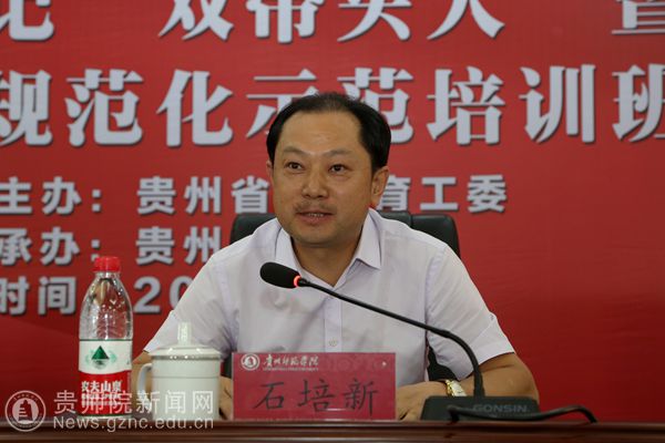随后,石培新作总结讲话。他指出,本次培训主题鲜明、针对性强、内容丰富、学风端正,学员们通过学习提高了认识,明确了方向,促进了交流。他希望大家能珍惜平台,增进友谊,互通有无,共同携手推进我省高校基层党建工作再上新台阶。