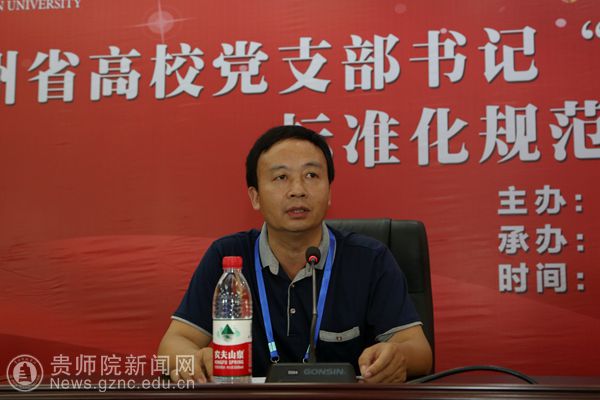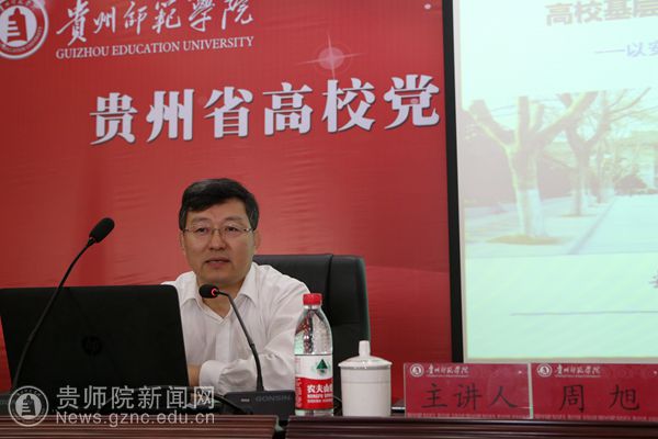 当天的课程以专题辅导与交流研讨相结合的方式展开。在上午的专题教学环节中,安徽农业大学党委常委、组织部部长、党校常务副校长周旭以《高校基层党组织标准化建设的实践与思考—以安徽省高校系统基层党组织标准化建设为例》为题,与大家一起交流了安徽农大在党建工作中的好经验、好做法;中南大学党委组织部副部长罗永忠在题为《中南大学基层党组织标准化建设实践与思考》的专题讲座中,针对高校基层党组织建设中的主要问题、主要任务,结合工作实践与学员们探讨了将如何全面落实好新时代党的建设总要求的思考和体会;下午,我校党委组织部部长伍燕从实践背景、基本历程、初步成效及经验启示四个方面向参训学员介绍了贵州师范学院开展基层党组织标准化建设的实践探索。