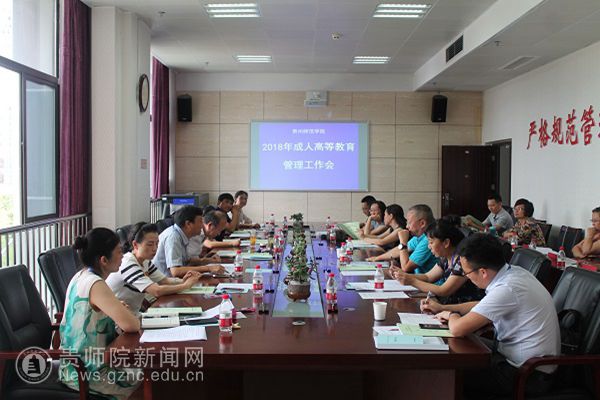 本网讯 7月16日上午,贵州师范学院2018年成人高等教育管理工作会在校评卷基地会议室召开。贵州师范学院校长郁钟铭、副校长郭文出席会议,继续教育学院、相关学院(部门)负责人及负责成高工作的老师参加了会议。会议由继续教育学院院长赵德肃主持。