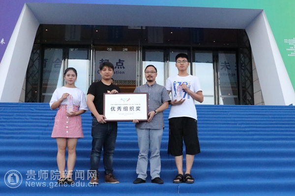 廖江华(左一)老师代表我院邓鹭、樊亚老师领取优秀指导教师奖