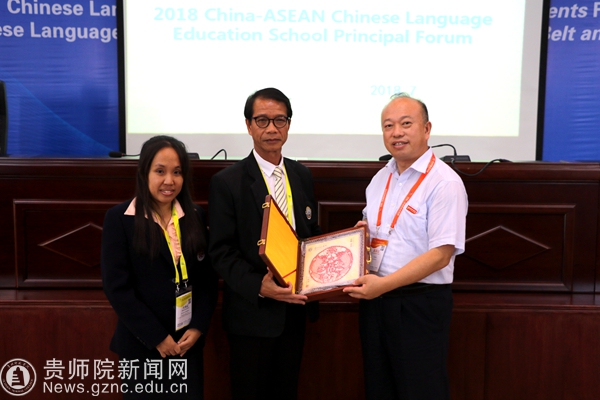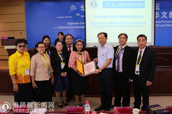 本网讯 2018年7月27日,“一带一路背景下的华文教育”校长论坛在第十一届中国-东盟教育交流周上召开。闭幕式结束后,与会嘉宾按照既定行程移步贵州师范学院道德讲堂,参与华文教育校内座谈会。全体校领导出席座谈会,座谈会由文学院党委书记韦丹主持。