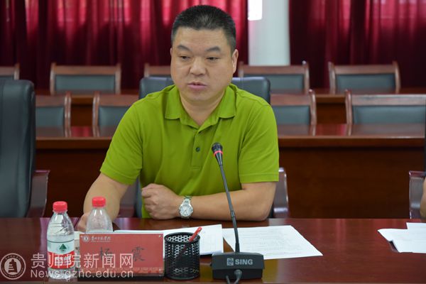 本网讯 9月6日上午,贵州省语言文字工作委员会办公室朱琴主任、杨震老师到我校指导语言文字规范化达标创建工作。校党委书记石培新、校长郁钟铭、副校长郭文热情接待朱琴一行人员,并就语言文字工作和学校发展进行了亲切交谈。教务处处长熊世桓、文学与传媒学院党委书记韦丹等陪同朱琴一行对我校普通话水平测试站、创新创业学院进行了考察指导,并在第一会议室召开了专题交流会议。郭文出席会议,校党委宣传部、学工部、科研处、教师工作处行政主要负责人、资料员及各二级学院资料员参加会议,会议由熊世桓主持。