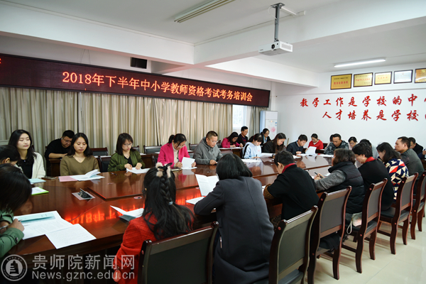 本网讯 为做好2018年下半年中小学教师资格考试工作,11月2日上午在教务处会议室召开了考务工作人员培训会,全体考务工作人员参加培训。会上,教务处副处长刘宪帮传达了教育部、省招生考试院对考试纪律的要求,结合考务工作实际情况就各考务岗位职责作了明确要求,并强调了学校教学事故处理办法、国家教育考试违规处理办法、刑法修正案(九)中关于考试工作的条款,要求全体人员高度重视、提高站位,认真学习、恪尽职守,齐心协力做好本次考务工作。教务处综合科吴娇老师就本次考试的考务工作流程、重点注意事项进行了培训,全体考务人员签署了工作责任书。